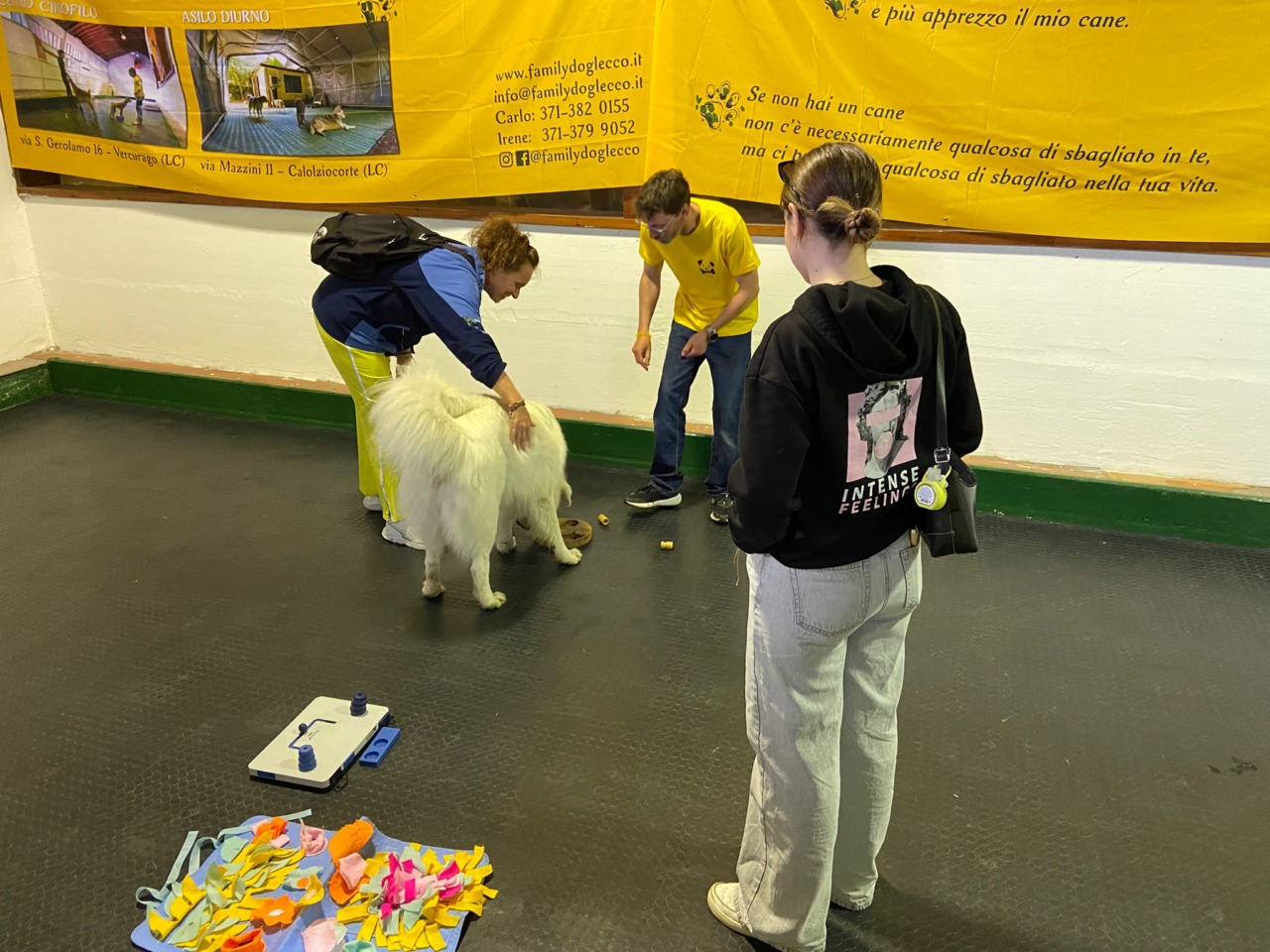 Nel corso del pomeriggio, il Centro Cinofilo ha accolto oltre cento visitatori insieme ai loro amici a quattro zampe. Molti proprietari hanno partecipato attivamente alle varie attività organizzate dalla Istruttrice Cinofila CSEN e Addestratrice ENCI Irene Cagliani, insieme all’Educatore Cinofilo CSEN Carlo Costa, già noti per la loro esperienza con l’Asilo per Cani di Calolziocorte.