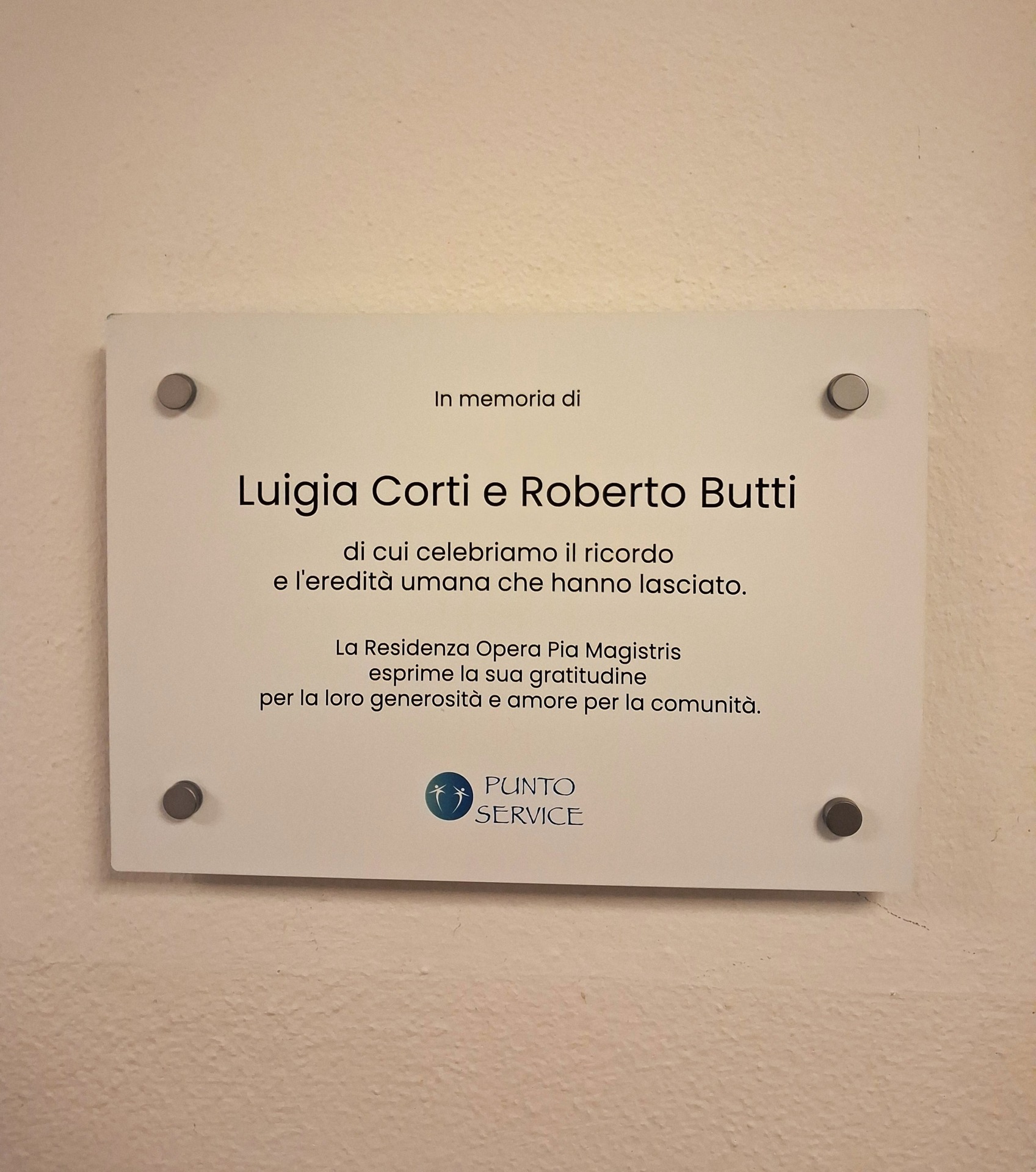 Giovedì 23 aprile 2026, la Residenza Opera Pia Magistris di Valmadrera ha ospitato un evento carico di emozione: l’inaugurazione delle targhe commemorative dedicate ai coniugi Luigia Corti e Roberto Butti, collocate nei saloni comuni di due degenze.