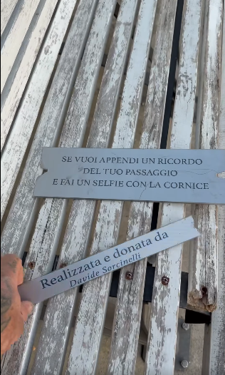 Sorcinelli aveva trasformato un piccolo spazio naturale in un luogo unico: una panchina bianca con vista sul lago e sulle montagne, adornata con targhe, cornici per selfie e altri accessori. Qui chiunque poteva fermarsi per godere del paesaggio e condividere momenti di serenità.