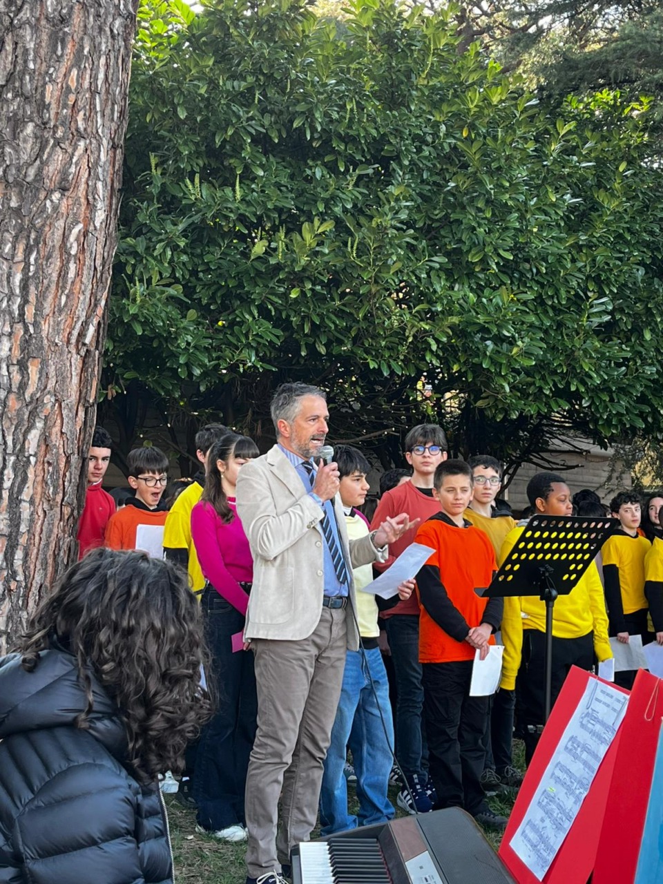 La manifestazione è iniziata alle 9 con l’esibizione al pianoforte degli studenti dell’indirizzo musicale, creando un’atmosfera di raccoglimento e partecipazione. La dirigente scolastica ha sottolineato l’importanza della data, simbolo di rinascita poiché coincide con l’inizio della primavera: «Vogliamo mantenere vivo questo ricordo e invitiamo le istituzioni a partecipare attivamente».