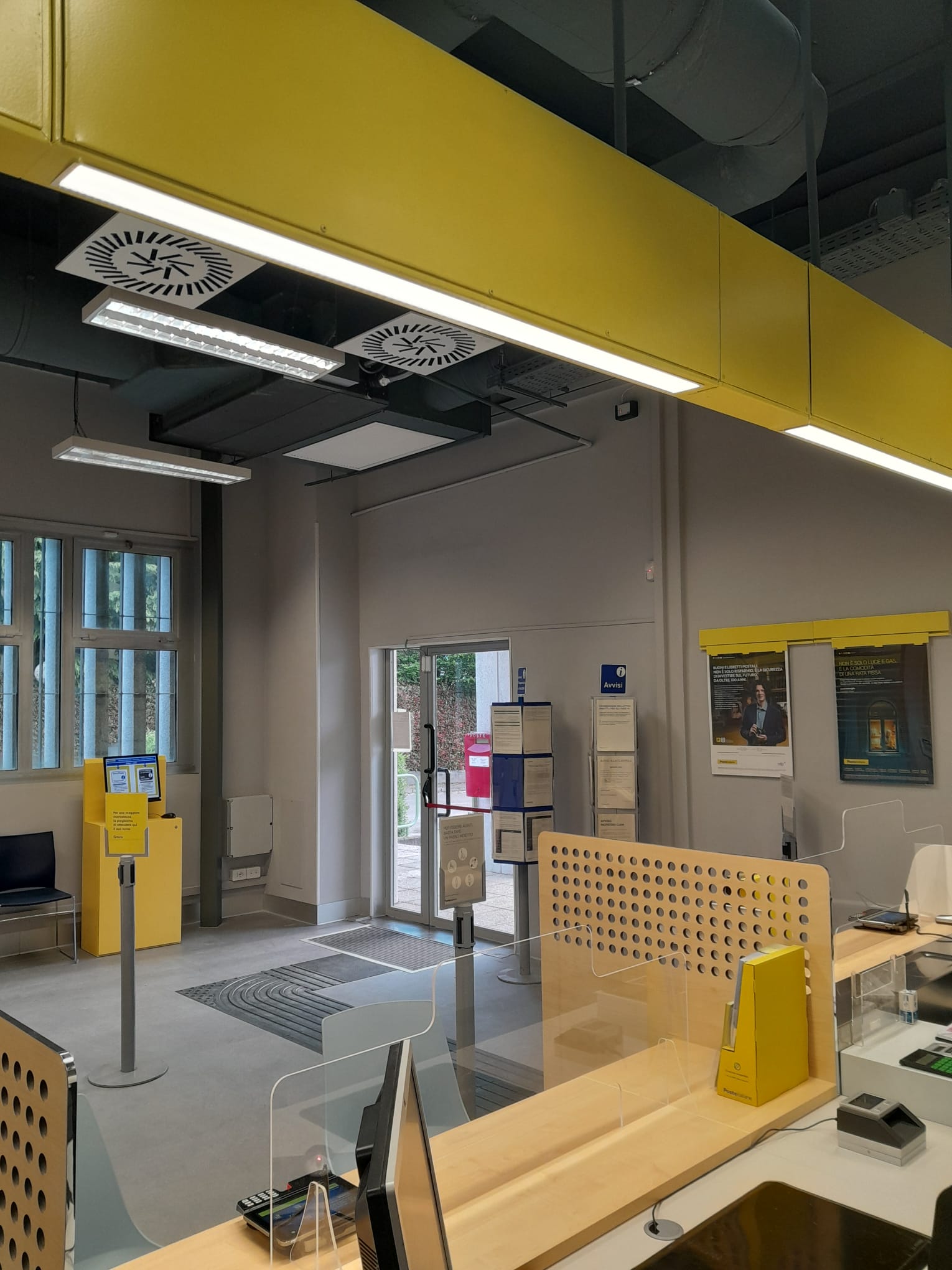 La sede di via Del Ponte 8 è stata completamente rinnovata, offrendo ambienti moderni, accoglienti e sostenibili. Gli spazi sono stati dotati di nuovi arredi, una nuova palette cromatica e soluzioni a basso impatto ambientale, compresa l’illuminazione a LED a basso consumo. È stata anche creata una corsia dedicata per le persone ipovedenti e uno sportello ribassato per garantire un accesso facilitato ai servizi.