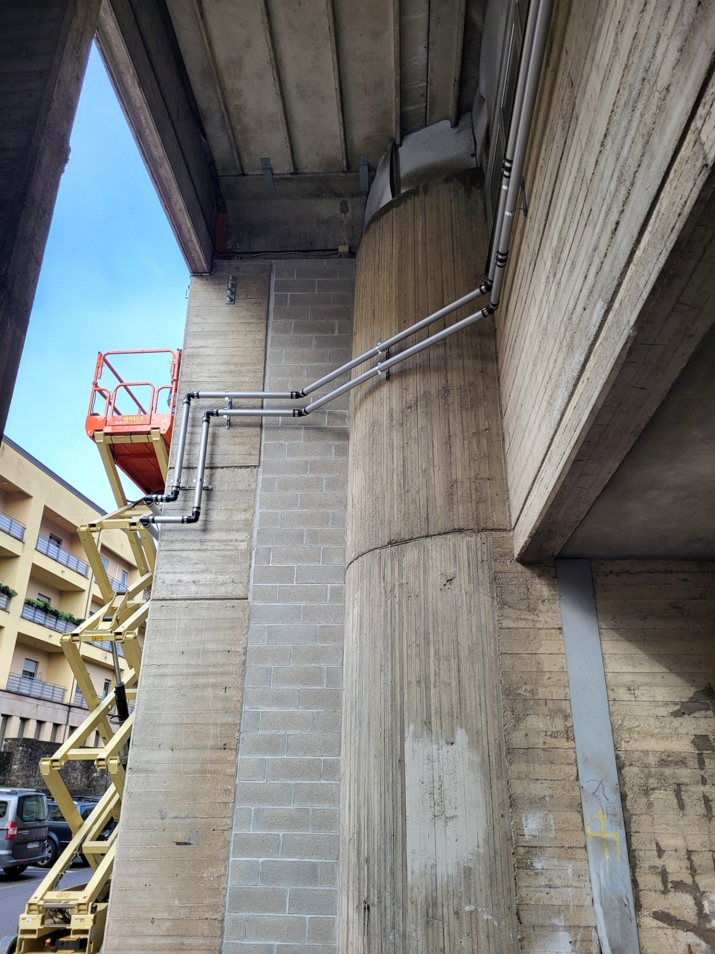 Nella prima fase, si è provveduto alla bonifica e allo smaltimento dell’impianto esistente, realizzando la dorsale principale di collegamento per il nuovo sistema.