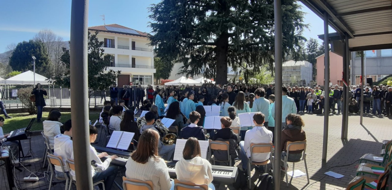 La cerimonia, aperta dall’Inno di Mameli, è iniziata alle 10 nel cortile dell’edificio scolastico, rappresentando un momento di grande valore civico per la comunità. Presenti i sindaci dell’Oggionese, rappresentanti delle istituzioni civili e religiose, del mondo scolastico e numerosi cittadini. Gli alunni, ai quali è dedicato il progetto, sono stati i veri protagonisti: Viola Girani e Leonardo Rota, due studenti della classe 5^ A, hanno spiegato le motivazioni dietro l’intitolazione. La banda della secondaria di Oggiono, diretta dal maestro Matteo Anghileri, ha eseguito alcuni brani, compresa la canzone “I Cento Passi”, accompagnata dal coro della classe di quinta, diretto dalla professoressa Laura Rigamonti.