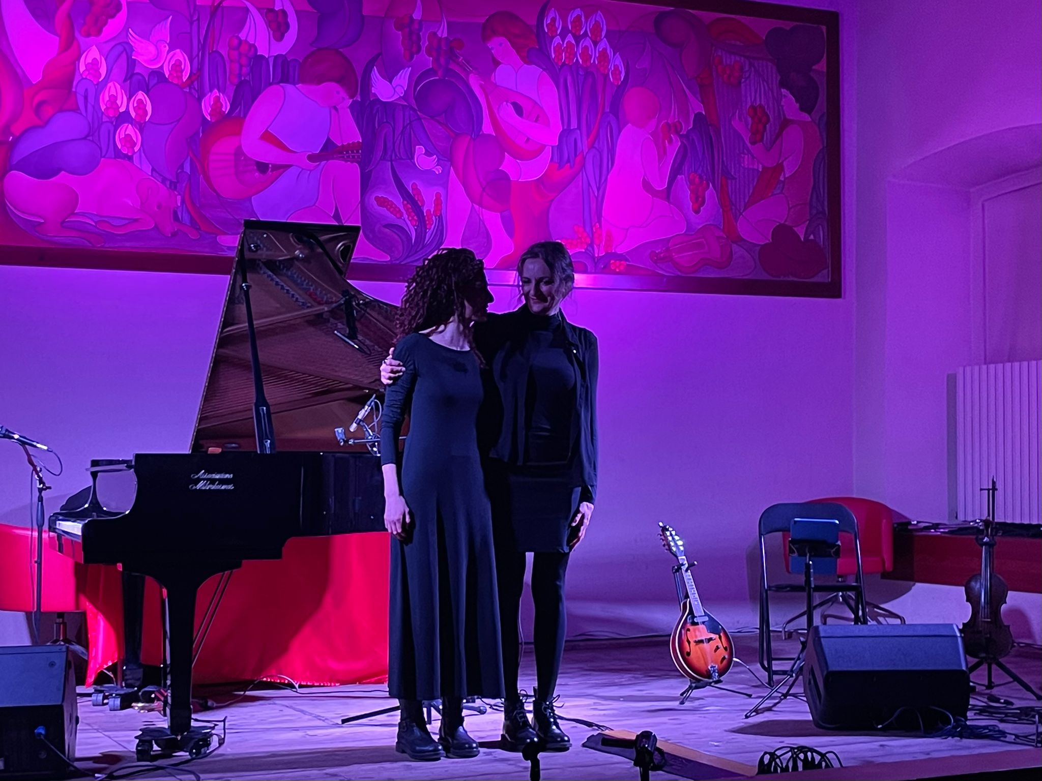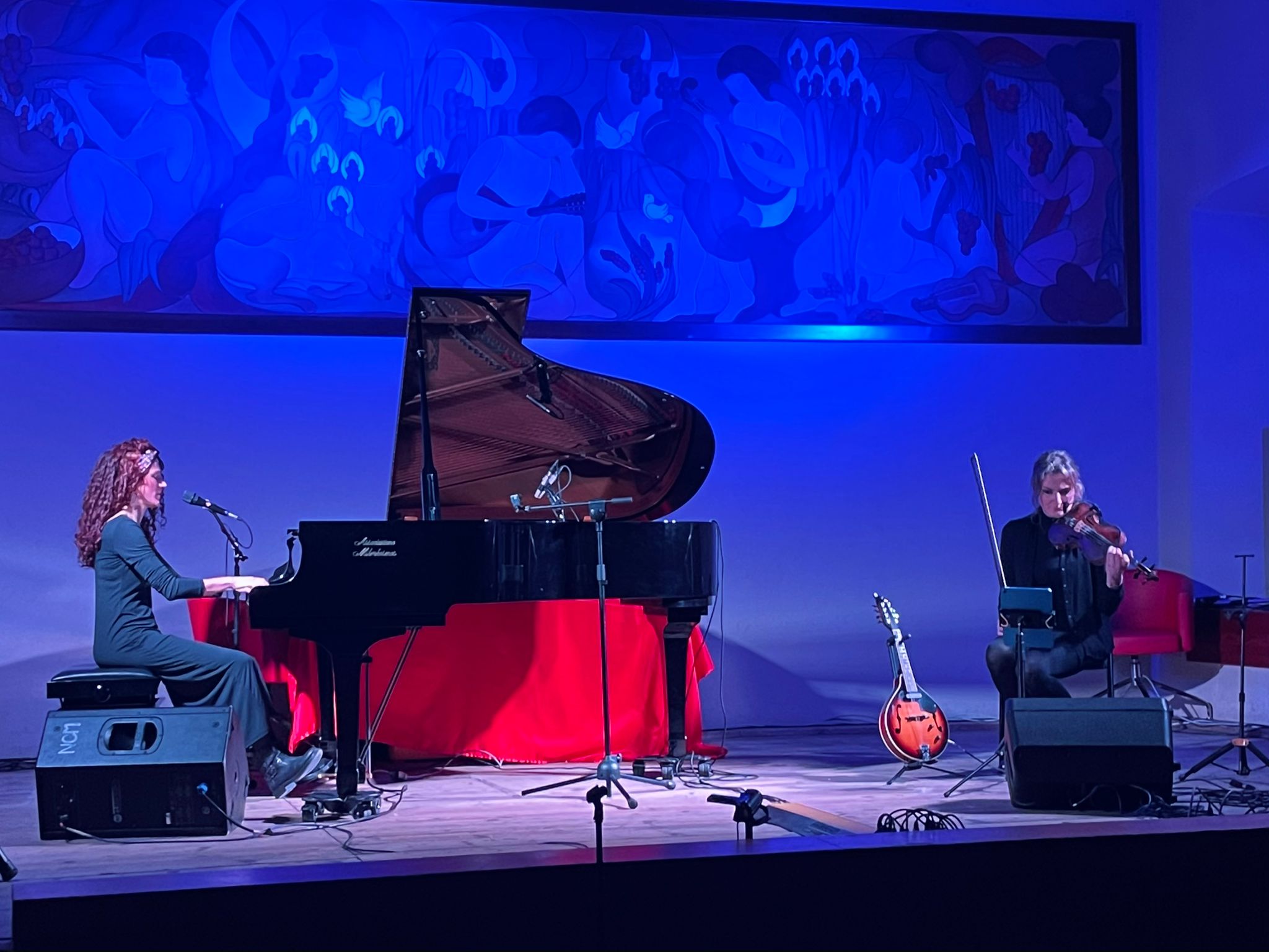 Le protagoniste della serata sono state le musiciste Giulia Molteni (pianoforte e voce) e Giulia Larghi (violino e mandolino), le quali hanno guidato gli spettatori in un suggestivo viaggio musicale tra le sonorità del Mediterraneo e del Sud America.