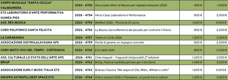 Infine, è centrale anche la dimensione territoriale. “Sostenere la cultura significa valorizzare la bellezza diffusa – afferma Francesca Rota, presidente di Silea –. Le arti dal vivo animano borghi e luoghi di grande valore storico e paesaggistico, rendendoli più accessibili e vivi. È questa dimensione capillare che rende il bando uno strumento prezioso per promuovere cultura e coesione sociale”.