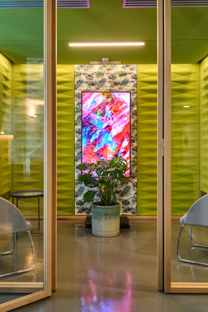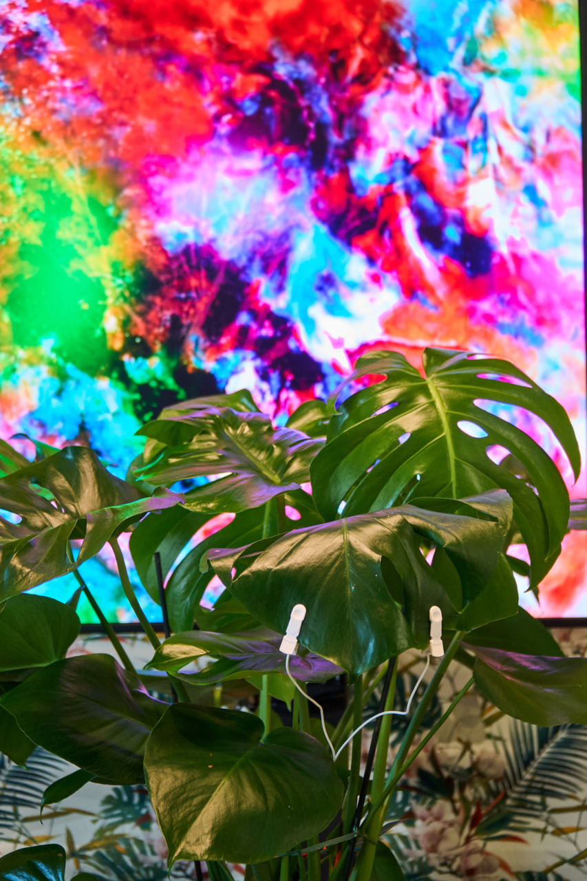 Questo dialogo tra elementi genera una composizione infinita di suoni, luci, colori e immagini, creata in tempo reale. La vita silenziosa della pianta e la memoria visiva dei video formano un ecosistema sensibile che si rigenera continuamente, invitando il pubblico a un’esperienza contemplativa e profondamente umana.