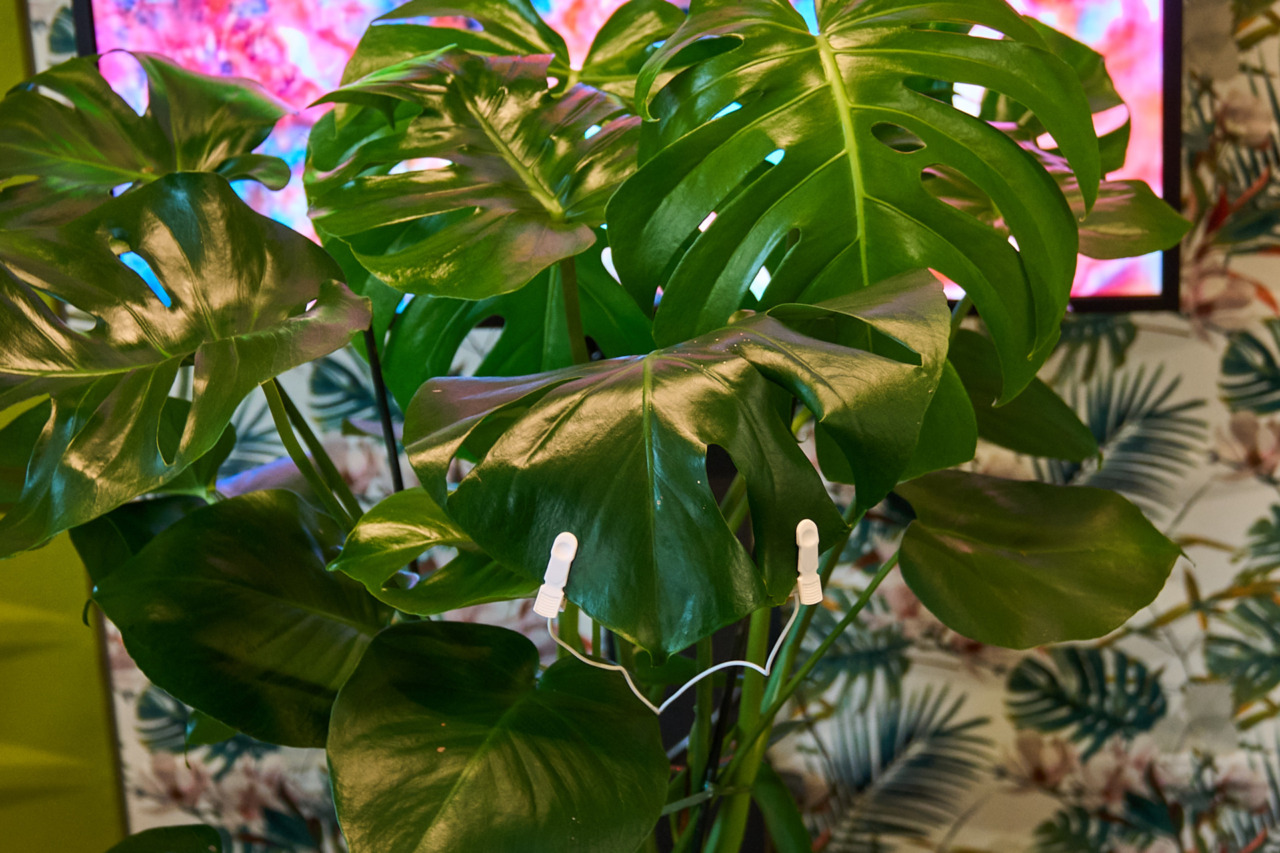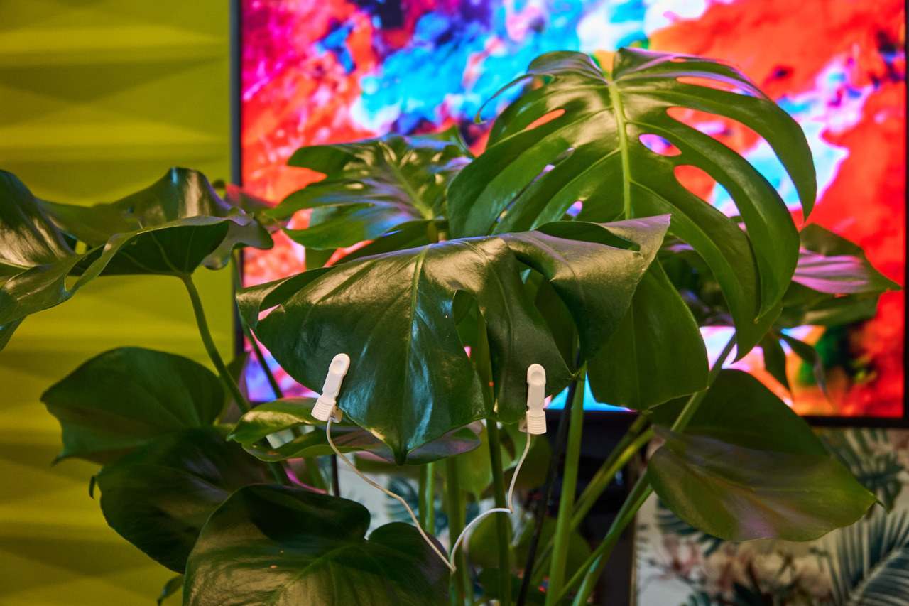 La pianta è responsabile della generazione dell’intero sistema dell’opera. I sensori rilevano le variazioni degli impulsi elettrici della pianta, trasformandoli in suoni eufonici ed euritmici. Questi suoni attivano luci che cambiano colore e intensità, creando un ambiente luminoso sempre in evoluzione. La sinergia tra suono e luce diventa un linguaggio sensibile, capace di evocare profondi stati emotivi.
