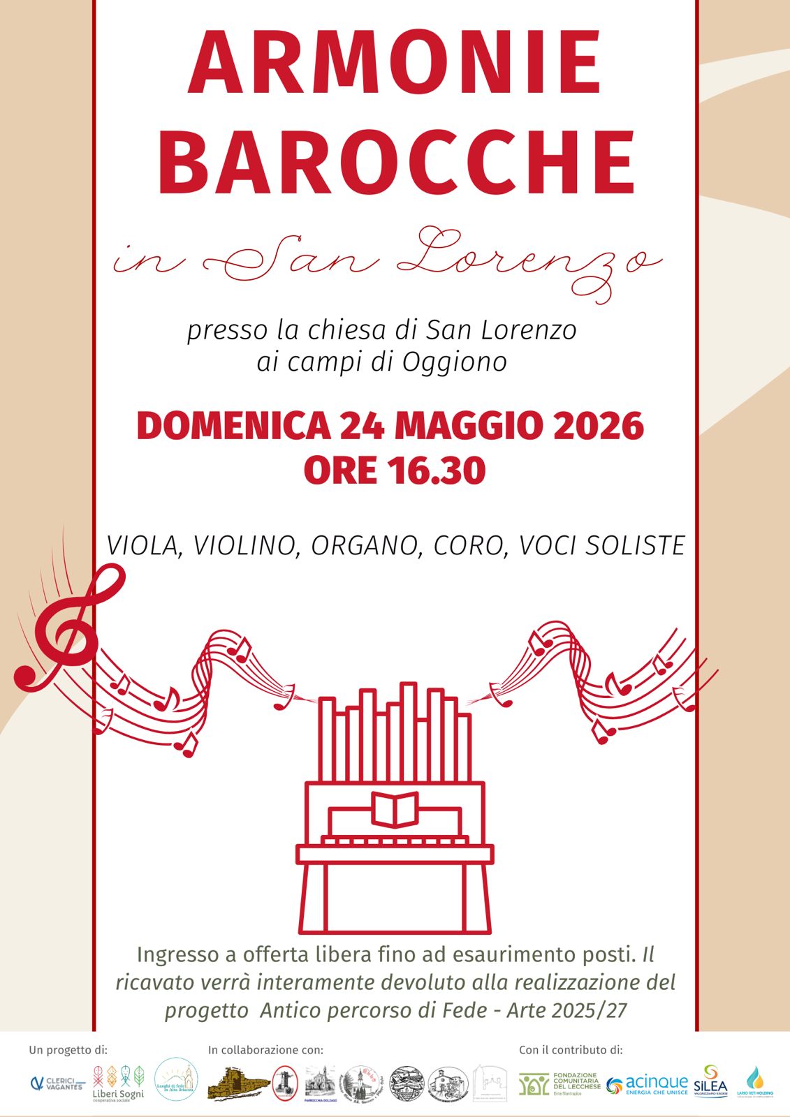 Anche la chiesa di San Lorenzo a Oggiono sarà aperta domenica 3 maggio, dalle 10:00 alle 12:30 e dalle 15:00 alle 17:30, grazie ai volontari della Pro Loco. Domenica 24 maggio, alle 16:30, è previsto il concerto Armonie Barocche in San Lorenzo, a sostegno del progetto Antico percorso di fede – arte 2025/2027.