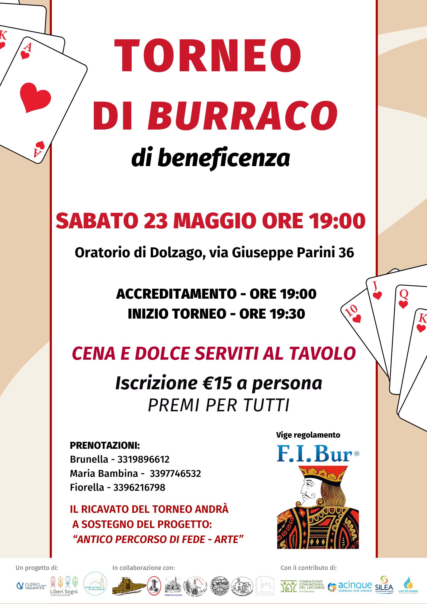 A Dolzago, la Chiesa di S. Alessandro in Cavonio sarà aperta per due visite guidate, alle 15:00 e alle 16:30, organizzate dai volontari della parrocchia. Inoltre, sabato 23 maggio, dalle 19:00, si svolgerà un Torneo di Burraco presso l’Oratorio di Dolzago, a sostegno del progetto Antico percorso di fede – arte 2025/2027, a cura dell’Associazione Pro Chiesa Brianzola.