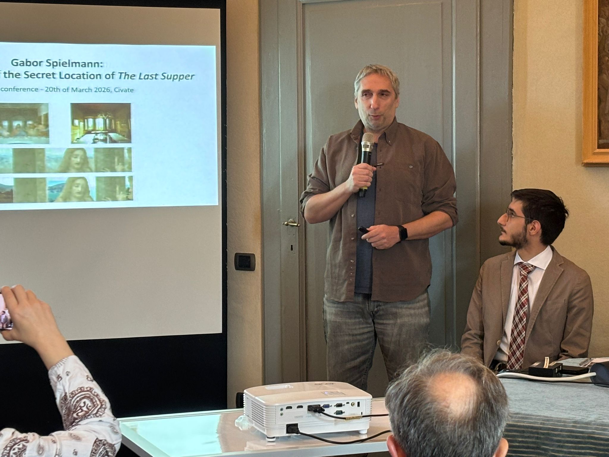 Il ricercatore Gabor Spielmann, durante la conferenza, ha utilizzato un traduttore per presentare i risultati della sua ricerca. Ha effettuato un’analisi digitale tramite Google Maps e ha visitato personalmente Civate per confrontare le misure dell’ex refettorio con quelle dell’affresco.
