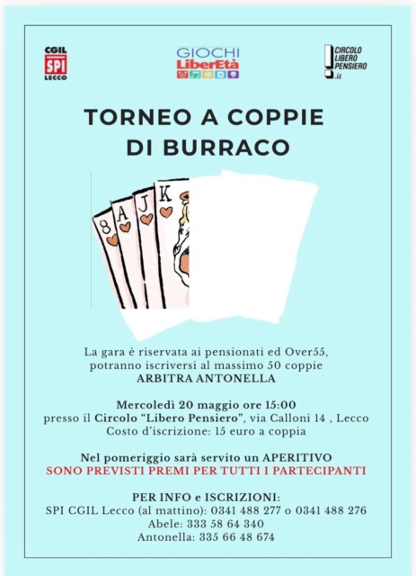 Il torneo si svolgerà martedì 20 maggio 2026, alle ore 15, presso il Circolo «Libero Pensiero», situato in via Calloni 14 a Lecco. L’evento è riservato ai pensionati e agli over 55 e prevede la partecipazione di un massimo di 50 coppie, per garantire un’organizzazione attenta e un ambiente accogliente per tutti i partecipanti.